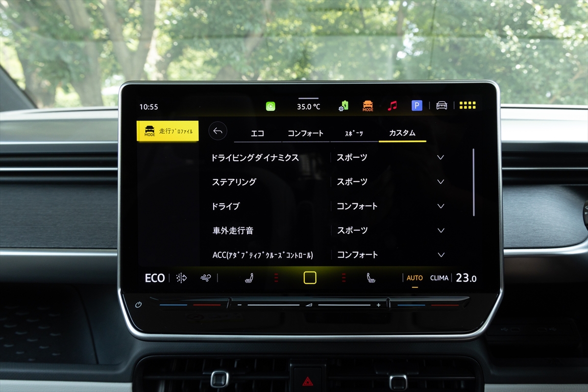 パワーがあるためか、かなり軽やかな印象。これならワインディングの登りも楽しめそう。ただ、飛ばし過ぎると制動距離の長さにもヒヤリとするかも。スポーツモードを始め複数のモードを用意していますが、ゆったりのんびり走るのが、このクルマの良さを引き出す走りでしょう。