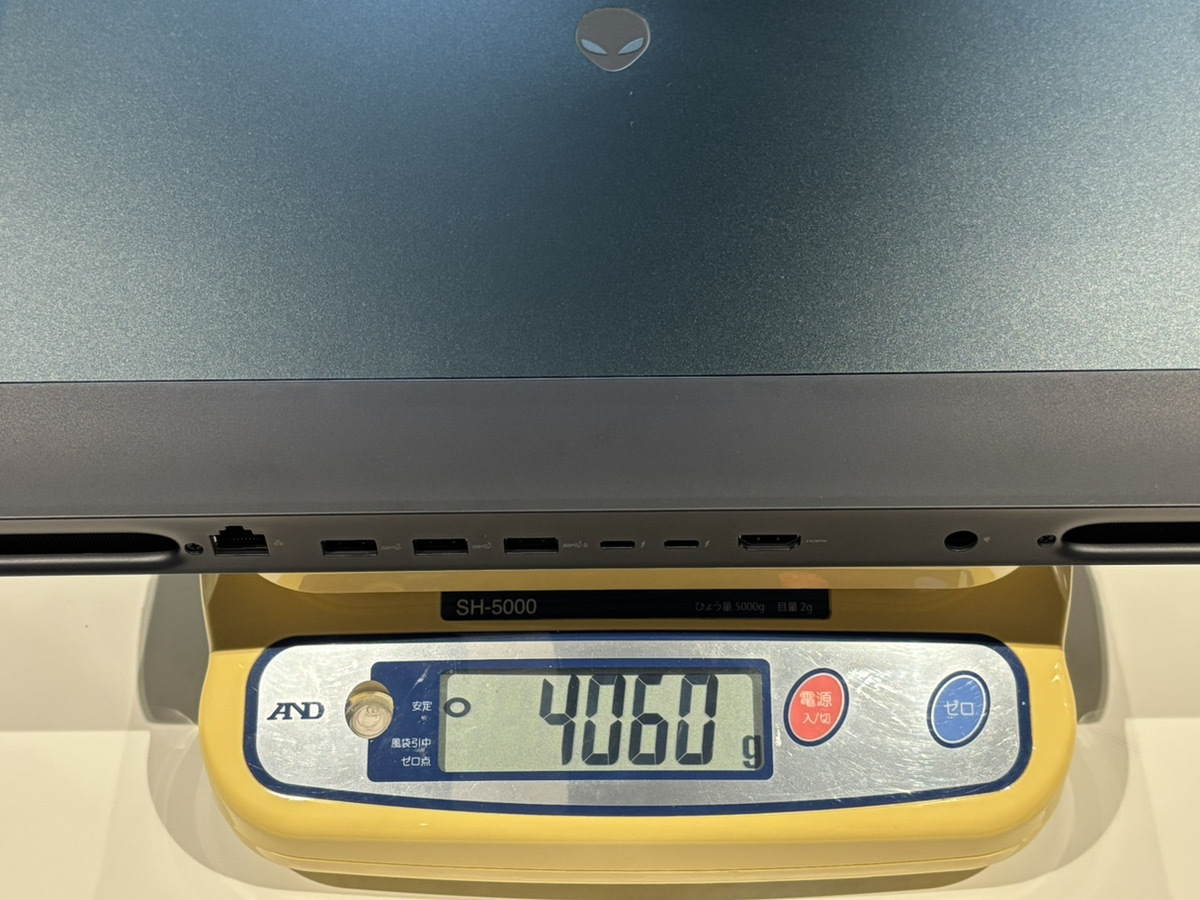 Alienware 18 Area-51の高性能と冷却を支える筐体は「そそりゃ重いよね」って話ですが、重量は約4kgほど、プラスして巨大な約1kgほどのACアダプターを持ち歩く必要があります。