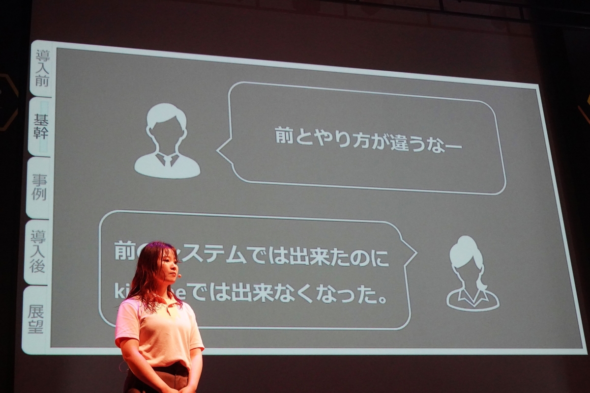 基幹システムの刷新から始まったkintone活用は、ライブ改善をきっかけに、会社の隅々へと浸透していく。ここではkintoneアプリで達成した2つのDXが紹介された。