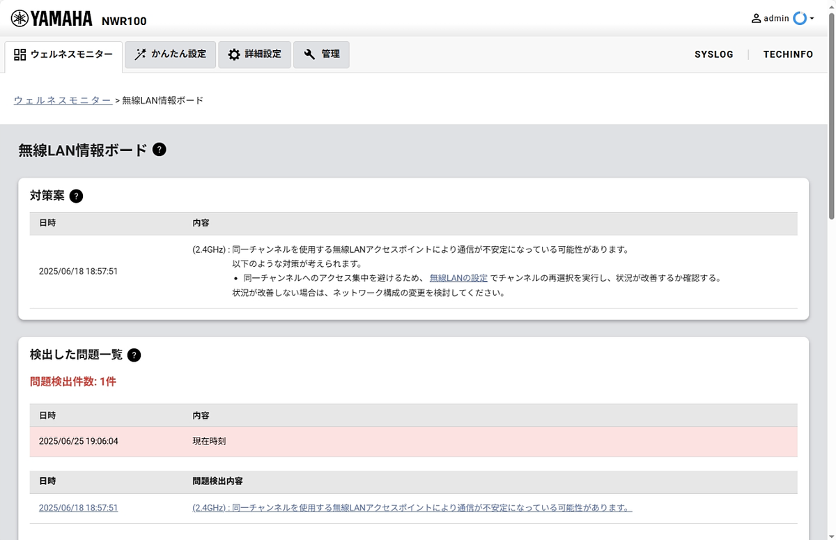 今回新たに搭載された「ウェルネスモニター」では、ネットワークのトラブルの可視化に加え、対策案を提示する。「本体情報ボード」「無線LAN情報ボード」「接続切断フロー」「端末一覧ビュー」の4つが搭載されており、トラブルの複合的な要因をトータルで分析し、解決案を提示する。