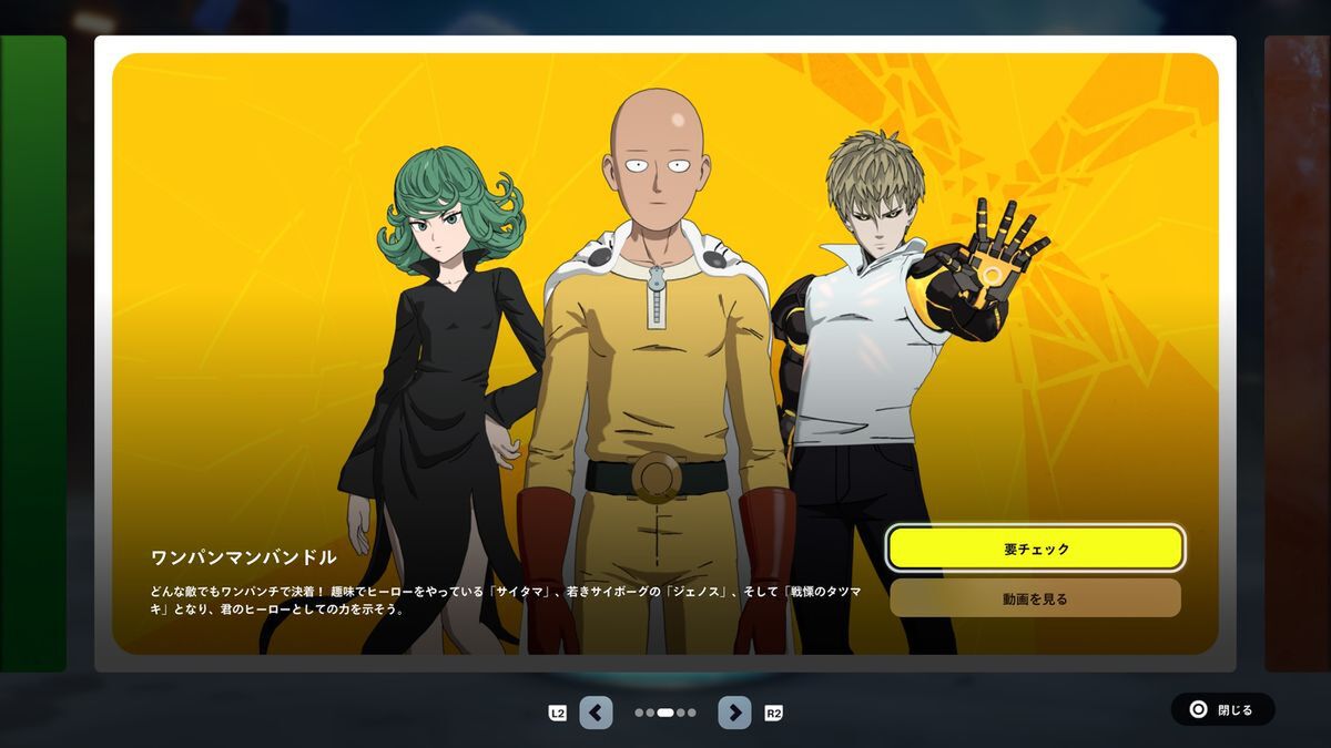 ショップにはコラボコスチュームなどが並び、専用通貨V-Bucksを消費して入手できる。主人公のサイタマ、Sランクヒーロー戦慄のタツマキ、サイボーグのジェノスが登場。それぞれ1500V-Bucksとなる。