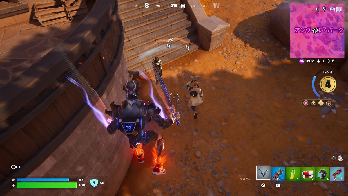 メダリオンの効果は、「ツルハシの攻撃が250ダメージ」になるというもの。シールド込みで最大ライフが250なので、文字通り「ワンパン(一撃)」で敵を倒せる。移動速度もアップしている模様。