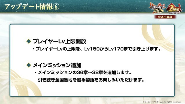 プレイヤーLvの上限を150→170に引き上げ、メインミッションを追加。追加されるストーリーは「近畿」「北陸」「東海」など各地方をテーマとした話となる。