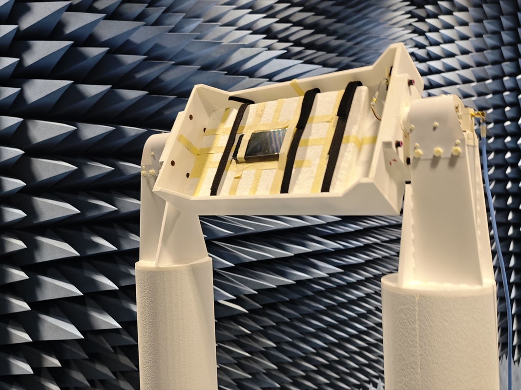 この試験では地下に実験室があることのメリットが存分に活かされています。それは、地下ゆえ外部の電波が届きにくいから。近距離無線通信(FeliCa)の試験では、さまざまなリーダーを使っての認識テストが行なわれます。たとえば、JRのグリーン車に乗るときに、天井にあるリーダーにピっとスマホをかざしますよね? それとまったく同じ環境を作って、自席のリーダーにかざしたときに隣のリーダーが誤反応しないよう、ミリ単位で部品の配置を調整しているのだとか。