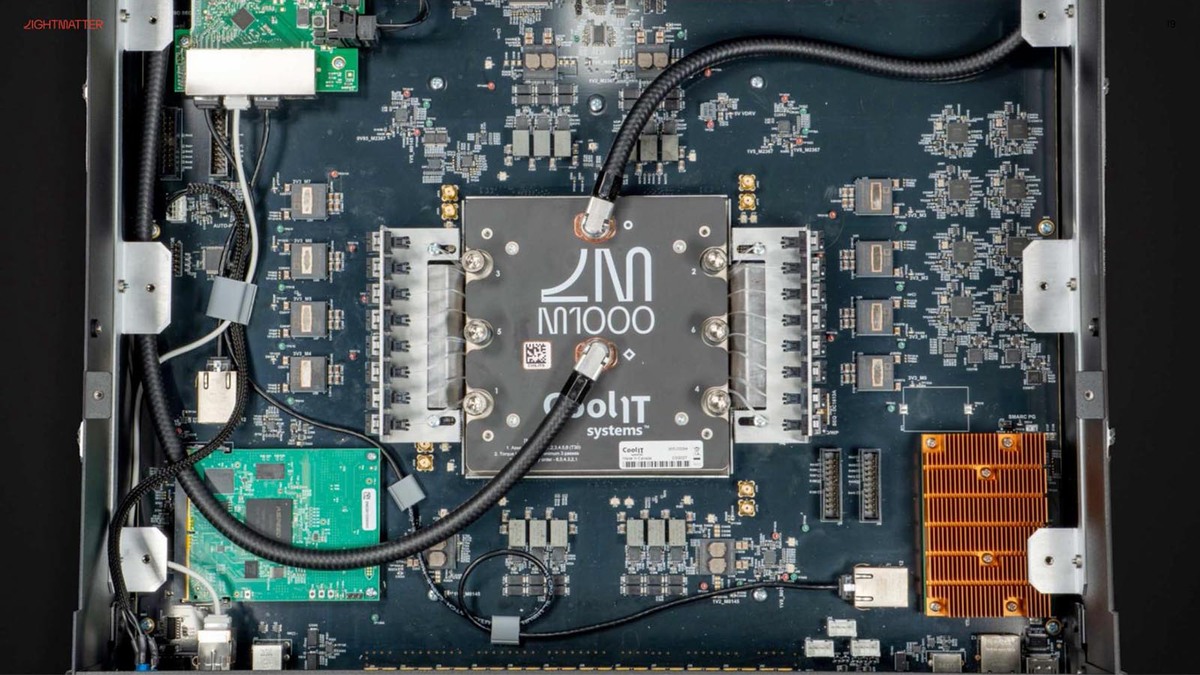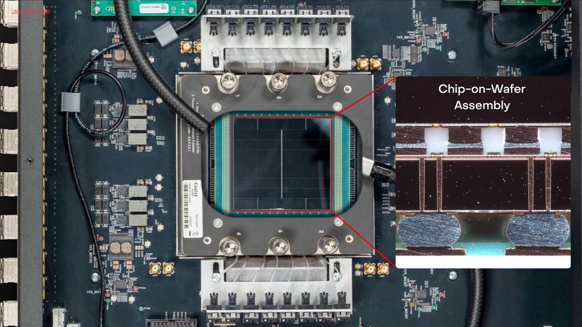 Passage全体の大きさはかなりのもの(チップレットの合計が4000mm2なので、63mm角以上の大きさになるはずで、おそらくパッケージ全体は70~80mm角と想像される。当然放熱も液冷が前提である
