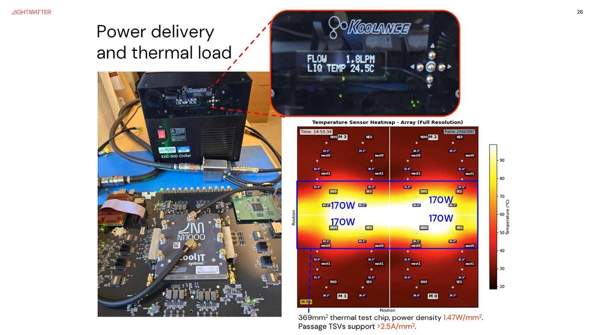 このテストチップでのPower/Thermalのテスト結果が下の画像で、PassageのTSVは2.5A/mm2を安定して供給できることが証明できたとしている。