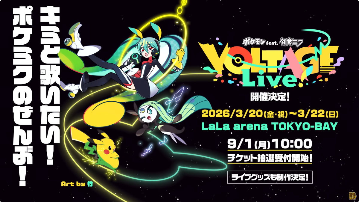 ポケモンはバーチャルシンガー「初音ミク」とのコラボとして史上初となる、リアル音楽ライブ「ポケモン feat. 初音ミク VOLTAGE Live!」を、2026年3月に開催すると告知した。