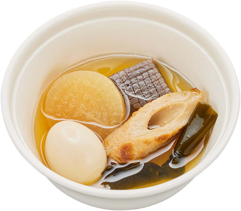 ラインアップは「おでん5種盛り合わせ(大根・玉子・昆布・こんにゃく・ちくわ)」と、単品「大根」「玉子」「ちくわ」「こんにゃく」「店内仕込つみれ」の全6品。価格は1種110円~と、お手頃価格で登場します。