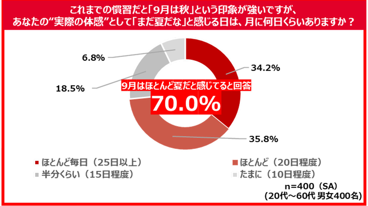 丸亀製麺が実施したインターネット意識調査によると、7割の人が「9月はほとんど夏」だと感じているそう。9月でも真夏日が続く近年の気候に合わせて、今回丸亀製麺はあえて冷たいうどんを提案しました。
