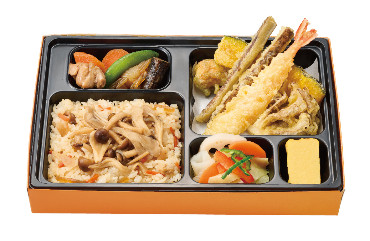舞茸やしめじの風味が生きたごはんに、天ぷらや煮物を合わせた内容は季節感たっぷり! 手軽なお弁当と、贅沢な御膳を気分に合わせて選べるのが嬉しいですね。