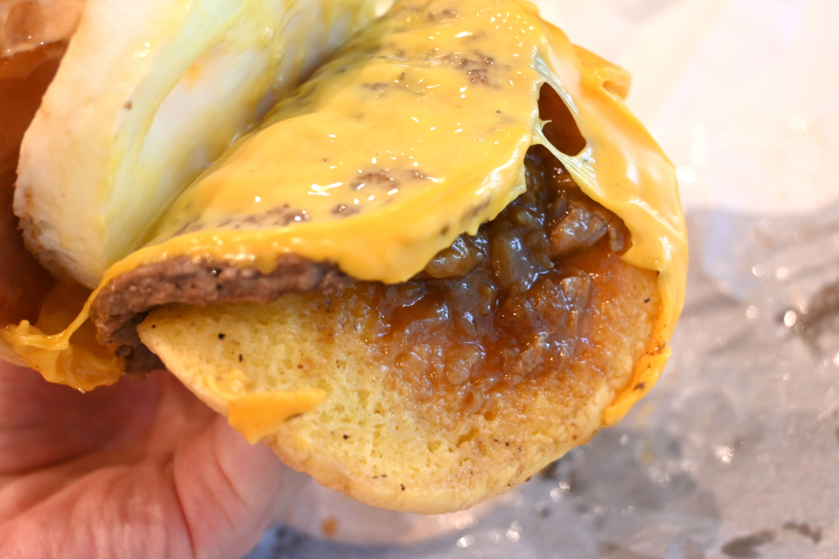 ポイントはなんといっても「すき焼きフィリング」。すき焼きの醍醐味ともいえる、“溶きたまごにすき焼きをくぐらせたようなまろやかな味わい”を表現。牛肉や野菜のうまみ、そしてすき焼きならではのコクを活かしながら、溶きたまごにくぐらせたようなまろやかなたまご感が感じられる一品に仕上がったといいます。
