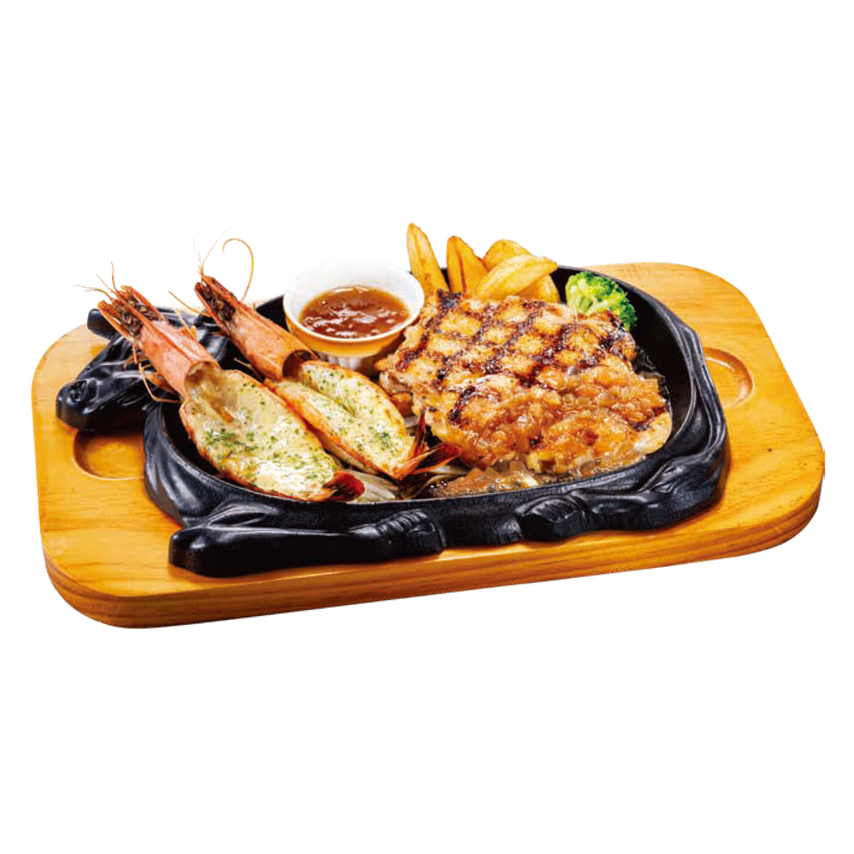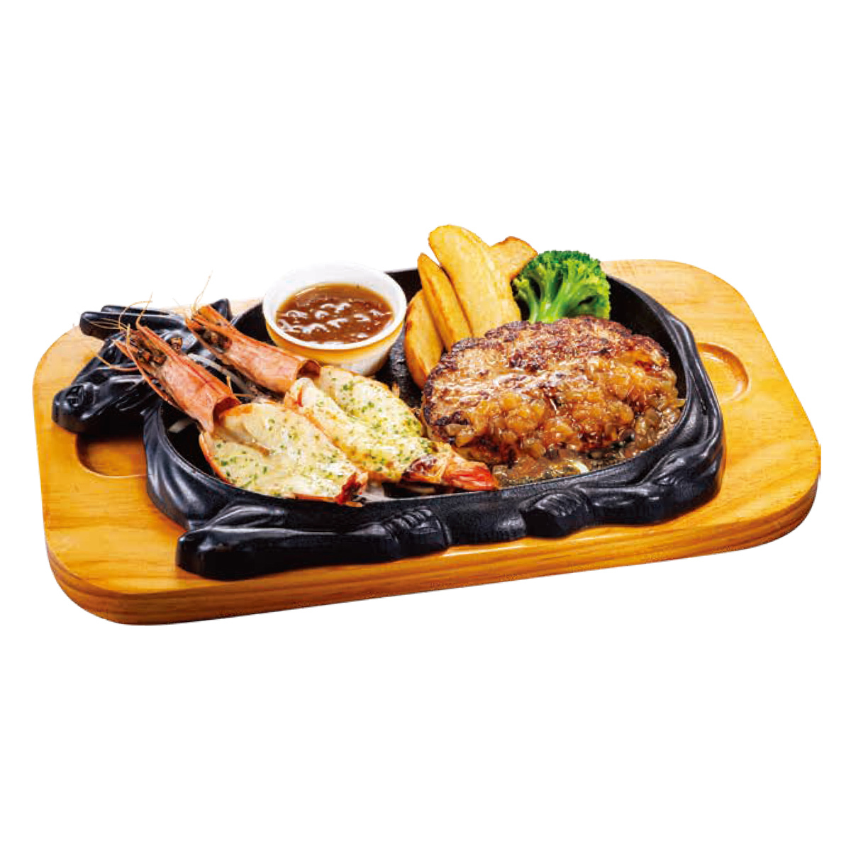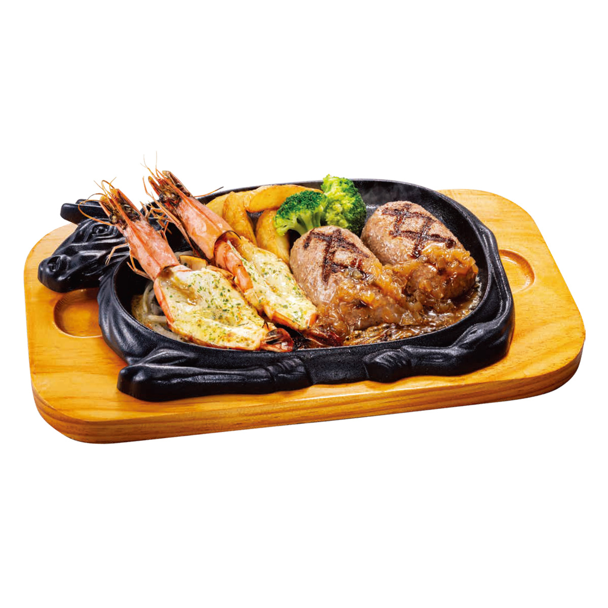 ▲殻付き海老の香味グリル&大俵ハンバーグ