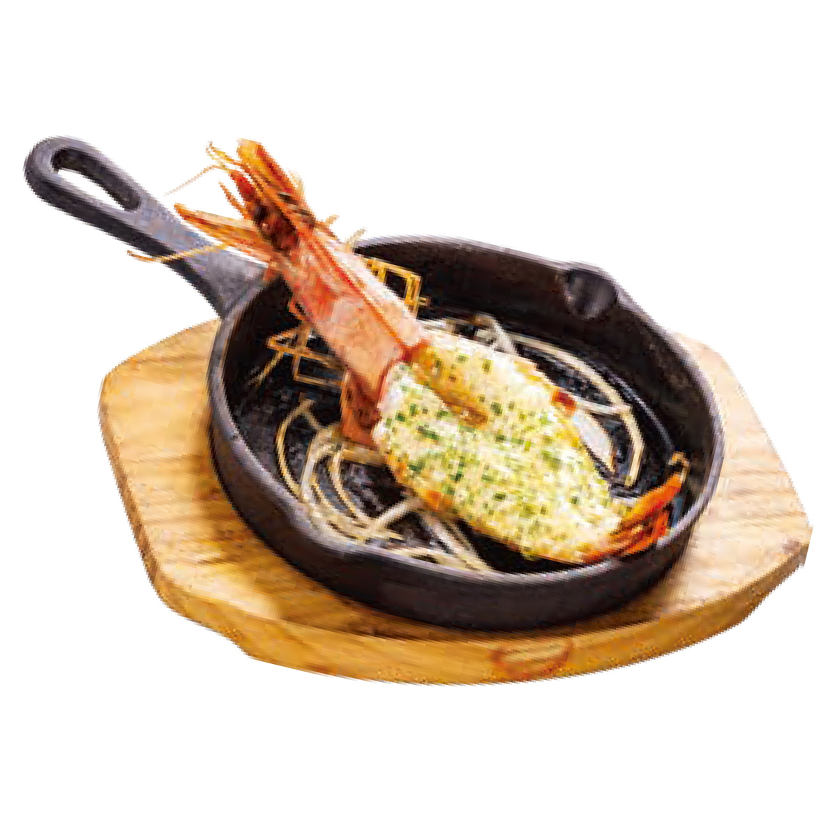 プリッとした弾力と濃厚な旨みが特徴のブラックタイガーに、ガーリックとレモンが効いたクリームソースをのせ、オーブンで香ばしく焼き上げています。