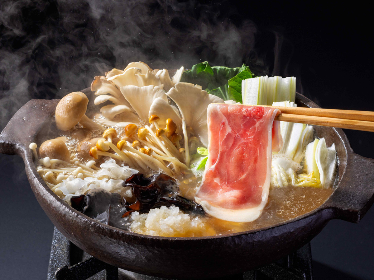 合鴨肉を中心に、タンパク質や鉄分を含む栄養豊富な鴨肉と6種のきのこが楽しめます。