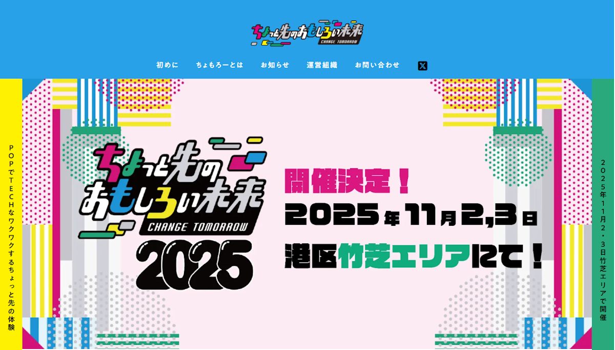 今年も、「ちょっと先のおもしろい未来」、英語で「ChangeTomorrow」、略して「ちょもろー」が開催される。2025年11月2日(日)、3日(月・祝)の2日間にわたって、東京都港区海岸にある東京ポートシティ竹芝、ウォーターズ竹芝を会場に開催される予定だ。
