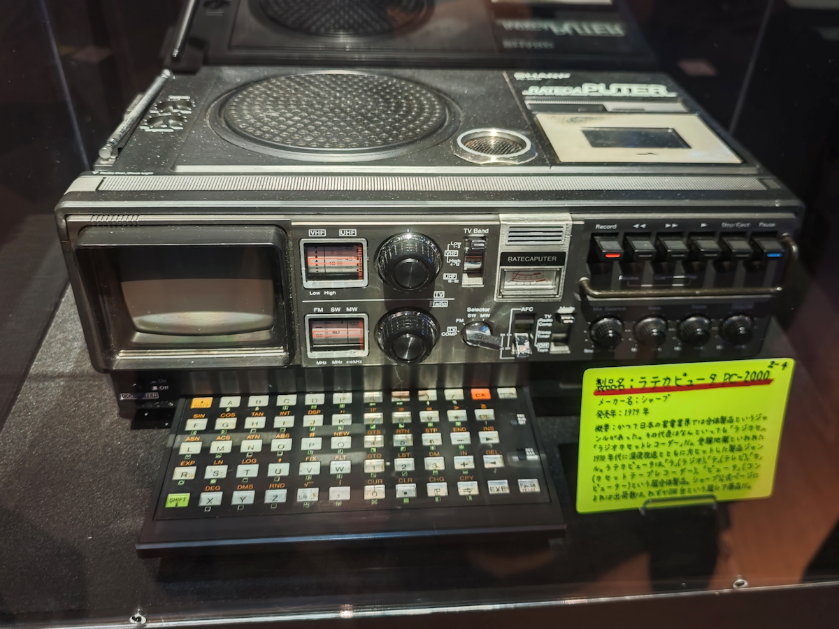 実は、この変態ガジェットインタビューでは、私も、「私の考える変態ガジェット3つ」をあげさせてもらった。1つ目は、現在、東所沢の角川武蔵野ミュージアムにて開催されている「電脳秘宝館」でも話題となっている「ラテカピューター」(1982年にシャープから発売されたラジオ、テレビ、カセットコーダー、コンピュータが合体した商品)。これは、見るからに変態なガジェット。