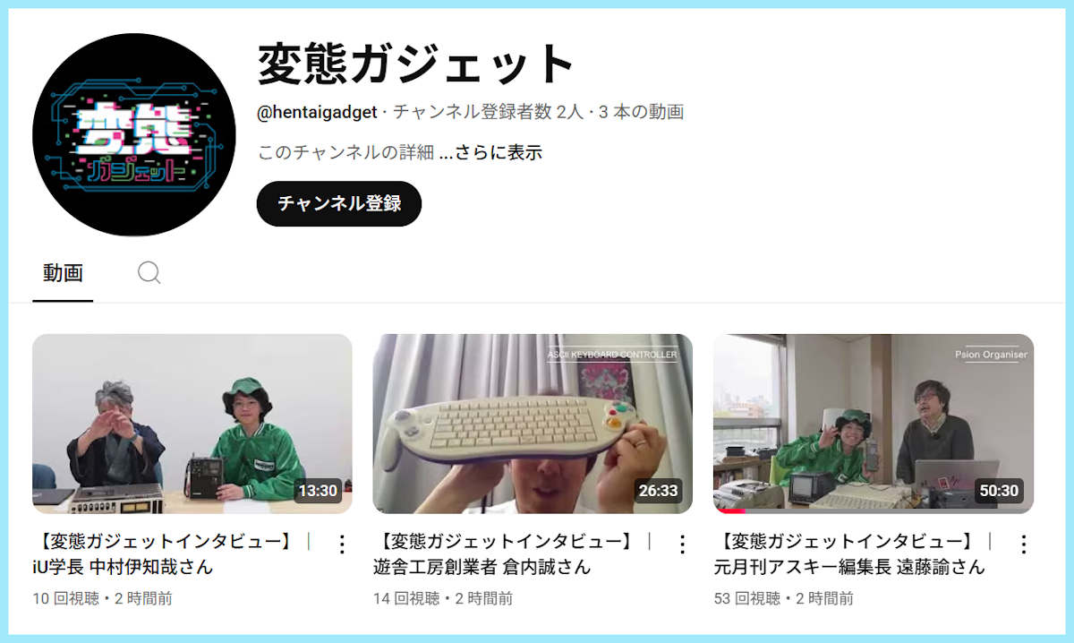 変態ガジェットプロジェクトとして、第一弾は、「変態ガジェットとは何か?」を知るためのインタビューである。この業界で活動する人たちに「私の考える変態ガジェット3つ」をあげてもらう連続インタビューシリーズである。2025年9月現在、SOLAくん自身が聞き手・編集となって、すでに10人以上のインタビューが行われ動画公開が始まったばかりだ。