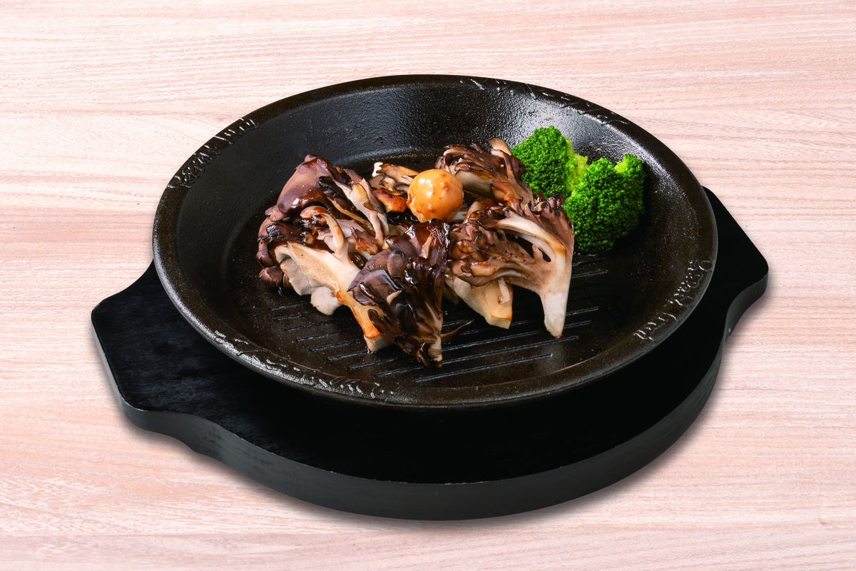 季節の付け合わせには「太平きのこ研究所」の茸士(きのこし)が厳選した黒舞茸を採用している。黒舞茸は濃厚な旨味とコリコリとした肉厚な弾力が特徴の舞茸。