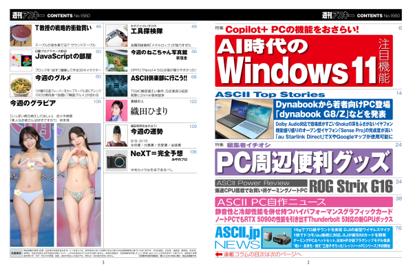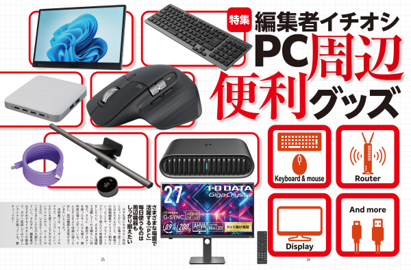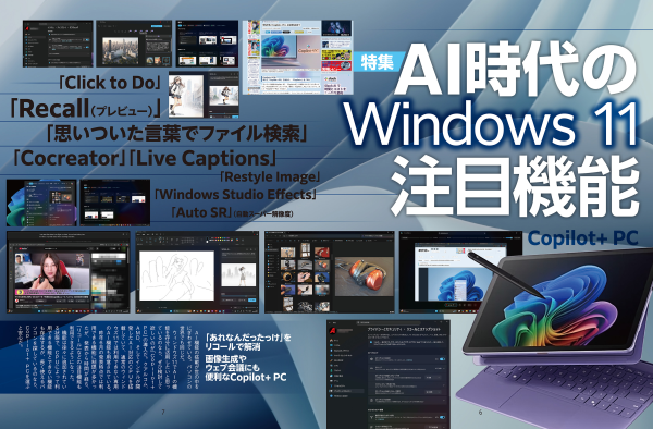 特集1はWindows 11のAI機能。Copilot+ PC向けに用意されたリコールなど、何ができるかをおさらいする。特集2はUSB充電器やドッキングステーションなどパソコン強化アイテム。ちょい足しであなたのデスクが便利になる!