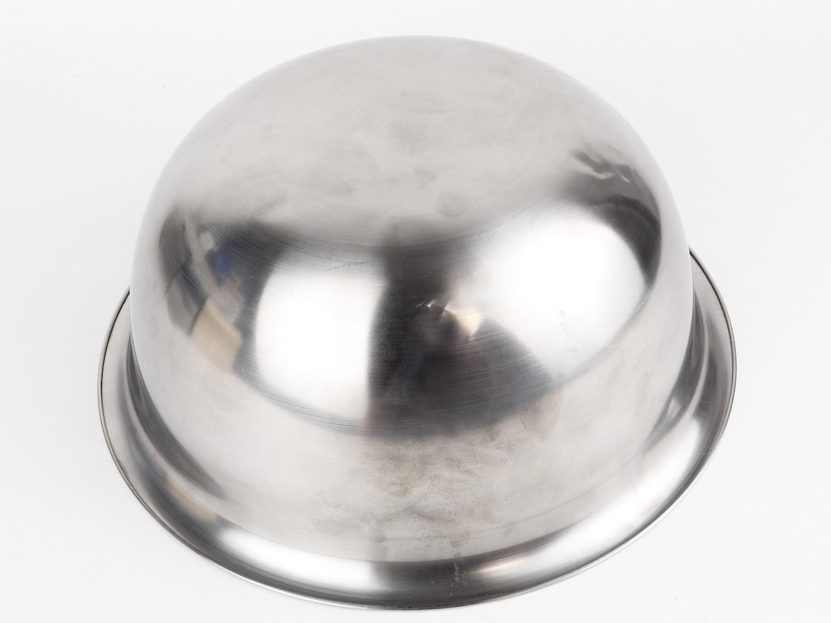 ステンレスのボウルをハンマーで叩き、凹ませた部分を戻してみましょう。凹み部分にアンビルを当て、樹脂ハンマーで叩き出してみました。