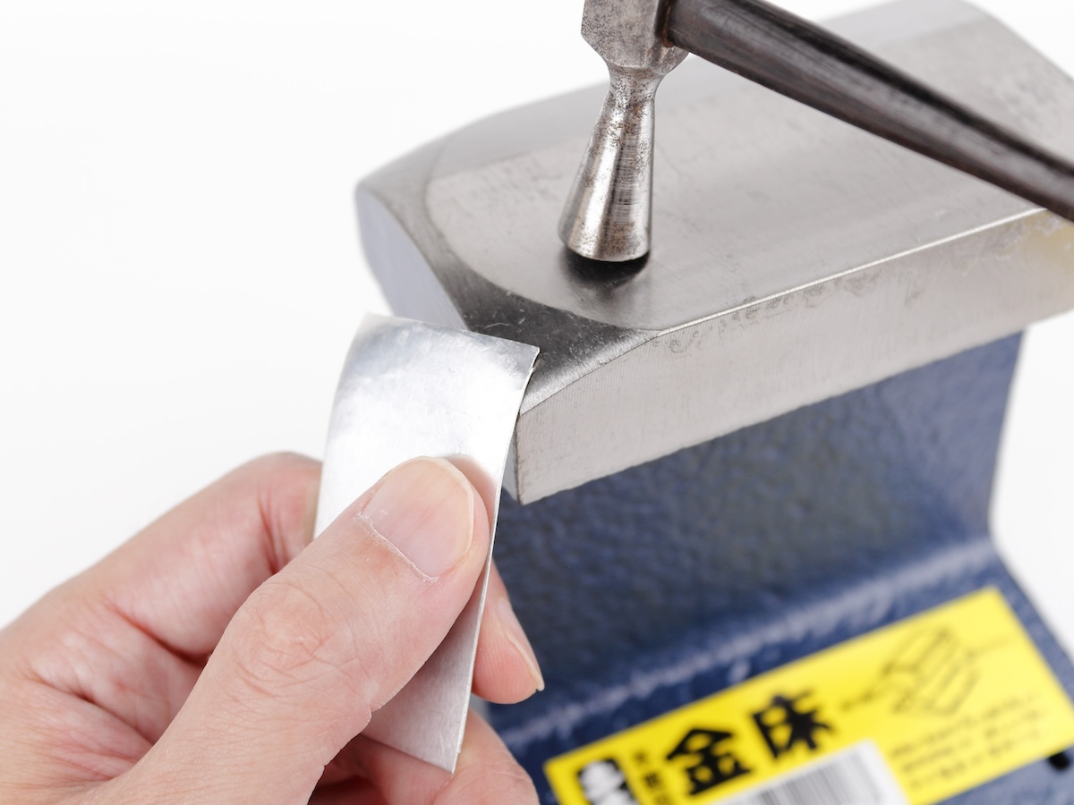 私はこれまで、軽く叩くだけだから……と、これといった作業台は用意せず、机の上や適当な木片の上で叩いていました。