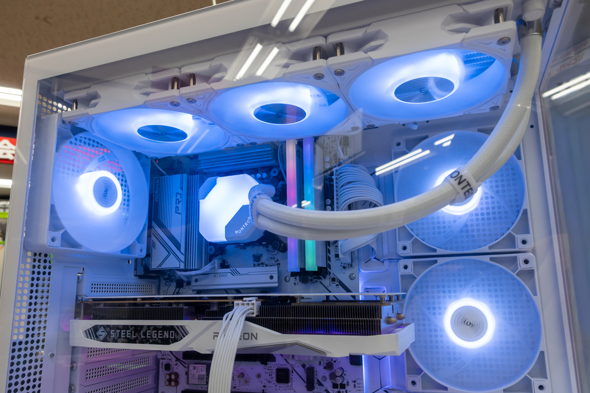 ドスパラ秋葉原本店では、「MONTECH HyperFlow ARGB 360」を組み込んだ展示機もあるので、LEDの色合いを自身で確認できるのもポイントだ。