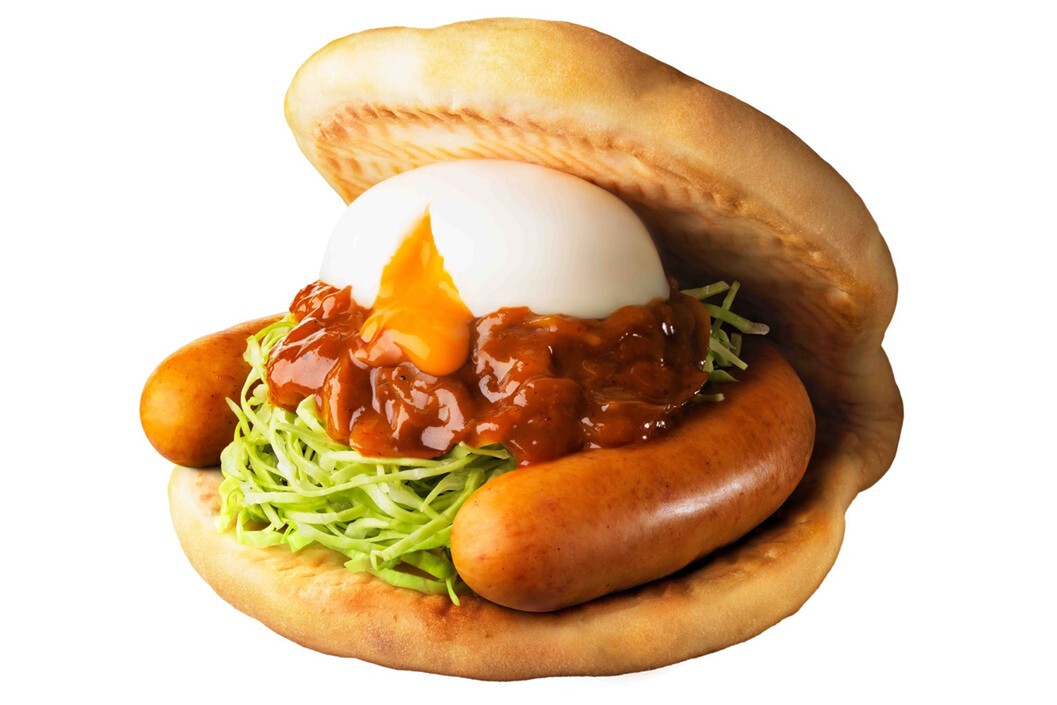 天然羊腸を使用した馬蹄形ソーセージにモスオリジナルのバーベキューソースと半熟風たまごを合わせ、フォカッチャでサンドしたメニュー。