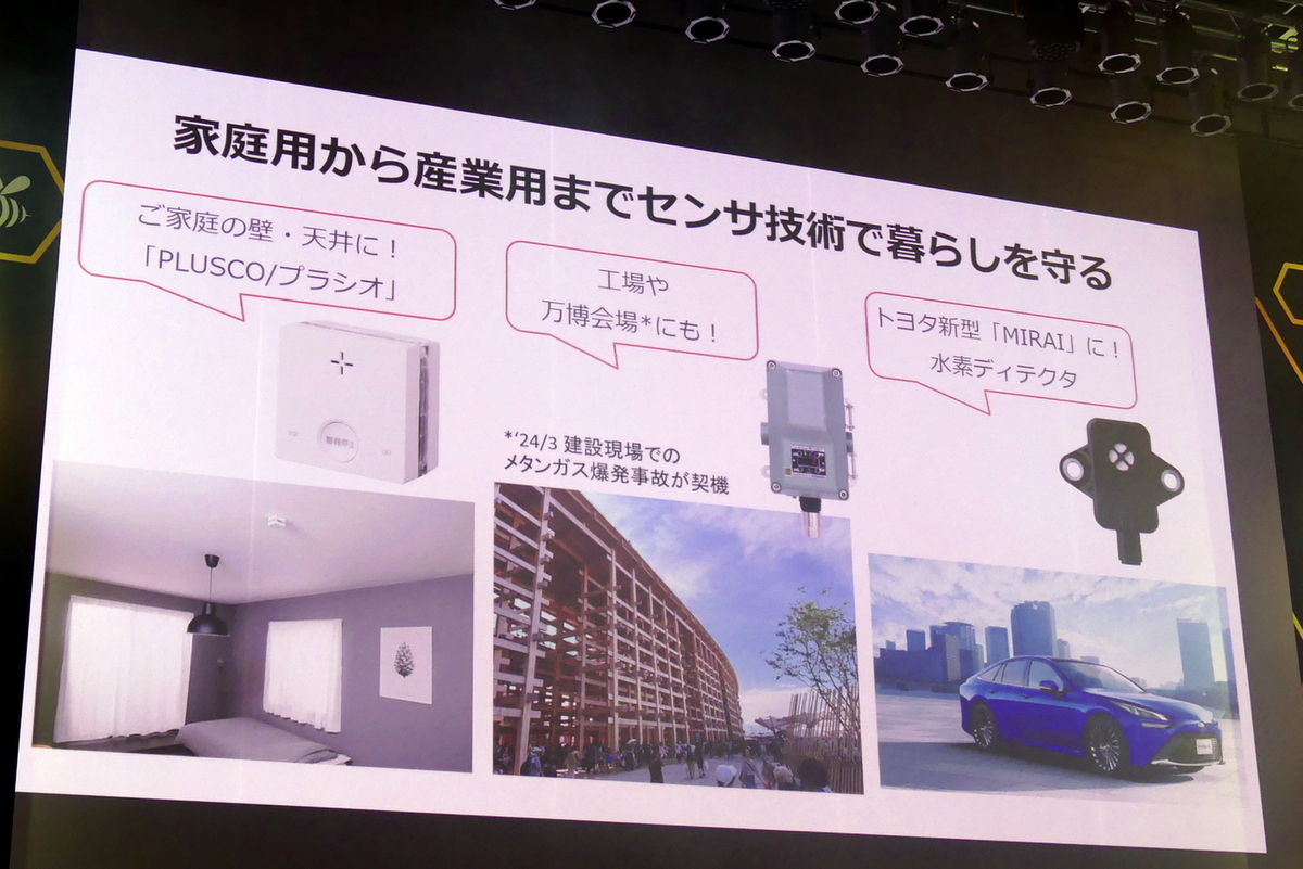 新コスモス電機は「世界中のガス事故をなくす」をミッションに、ガス警報器・ガス検知器の開発・製造・販売・メンテナンスを手がけている。今年で設立65周年で、大阪市淀川区に本社をかまえる。同社のガス警報器は家庭や工場などに設置されているが、新コスモス電機の製品は万博会場や、水素を燃料とするトヨタ自動車の「MIRAI」にも搭載されている。