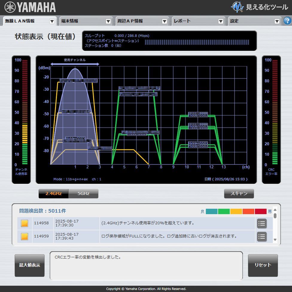 ネットワークトラブルで一番やっかいなのは、無線LANの接続トラブルだ。有線の場合は、ケーブルがつながっているかを見た目で確認できるが、無線LANは電波なのでつながっているか見た目で判断できない。しかし、ヤマハの無線LANアクセスポイントは無線の見える化ツールを搭載しているので、トラブル解決が容易に行なえる。