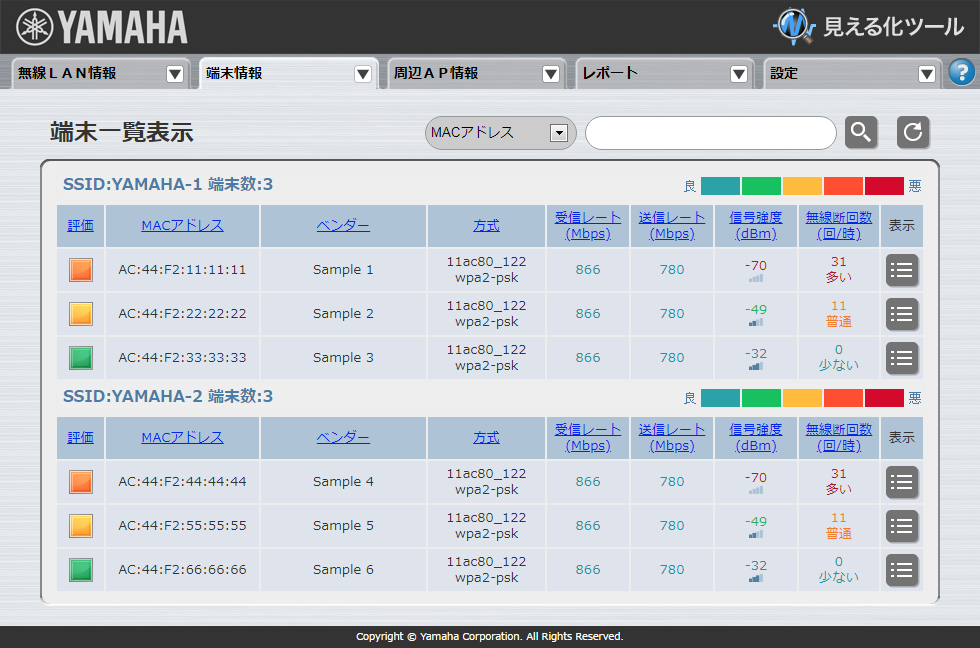 こうした無線LANのトラブルシューティングは、PCやスマホのツールを利用することも多い。しかし、実際にやってみればわかるが、刻々と通信状況が変わる中、デバイスを持ち歩いてトラブルの原因を探すのは、思いのほか骨が折れる。その点、ツールが搭載されているヤマハの無線LANアクセスポイントを使えば、すぐに見える化とトラブル対応が行なえる。この手軽さは大きなメリットと言えるのではないだろうか。