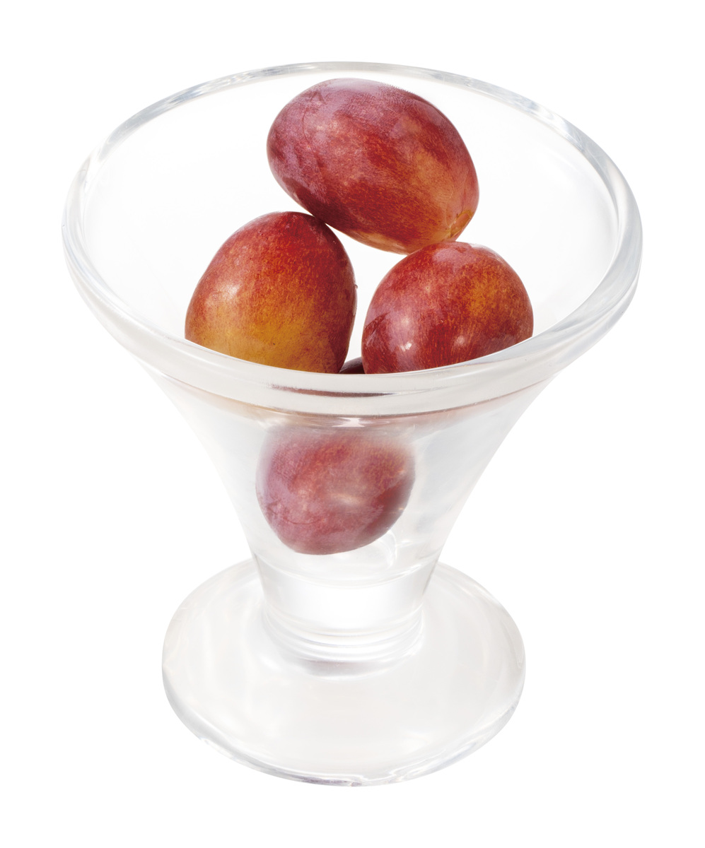 みずみずしいクイーンルージュの味わいをダイレクトに。フレッシュな果実を4粒、グラスで提供する。マスカットの爽やかな香りと強い甘味が特徴で、種がなく皮ごと食べられる。