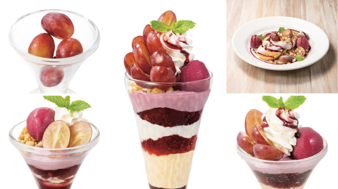 デニーズは9月17日より、約100店舗で「クイーンルージュ」を使用したデザート5品を販売開始する。なお、約200店舗では、例年通り「シャインマスカット」を使用したデザートの販売となる。