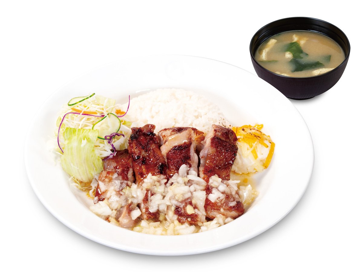 ジューシーに焼き上げたチキンに、玉ねぎソースを添え、ご飯に合う一皿として提供。みそ汁付きです。