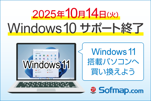 ソフマップは、Windows 10のサポート終了を前に、最新のWindows 11搭載パソコンへお得に移行できる「買い替えキャンペーン」を展開している。