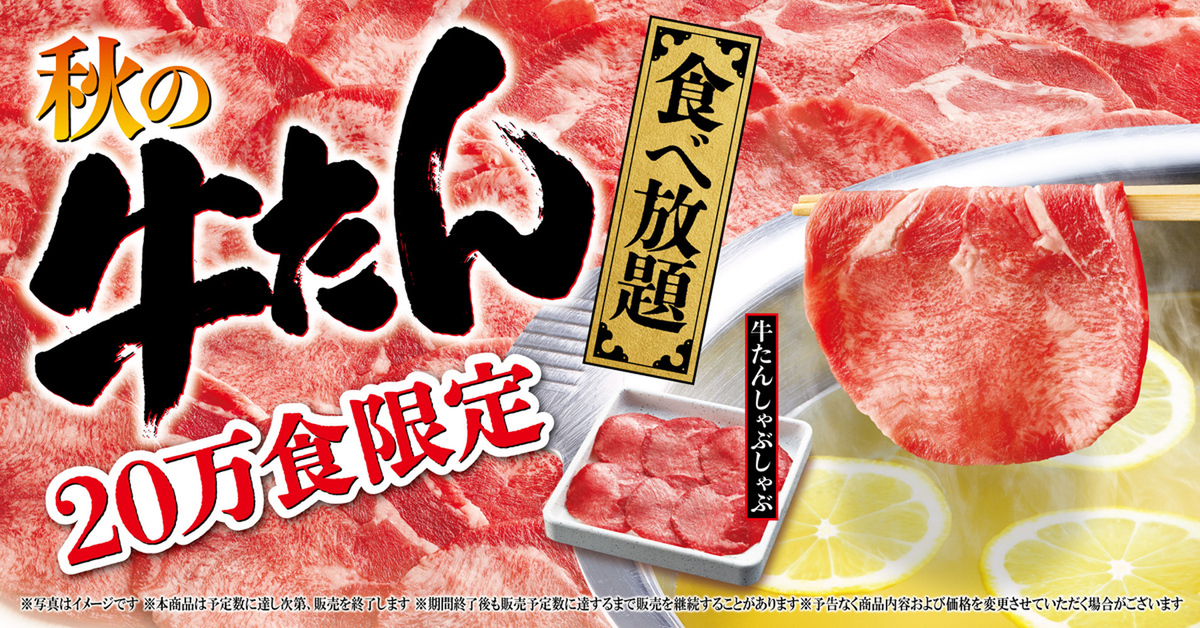 「牛たんしゃぶしゃぶ」は単品での注文も可能です。提供期間は9月17日から10月上旬までで、20万食限定となっています。