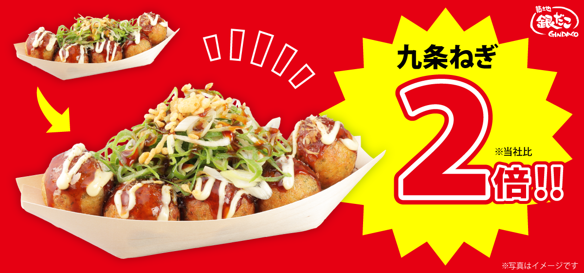築地銀だこは9月18日~28日の11日間限定で、「九条ねぎマヨ 特製ソース(8個入り)」を対象とした九条ねぎ2倍増量キャンペーンを実施します。