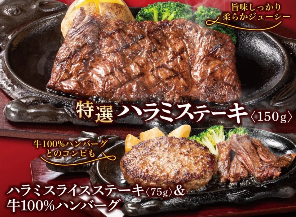 今回、敬老の日にむけて再びの登場。9月13日から15日の3連休。「特選ハラミステーキ」の柔らかジューシーな旨味を楽しむことができる。