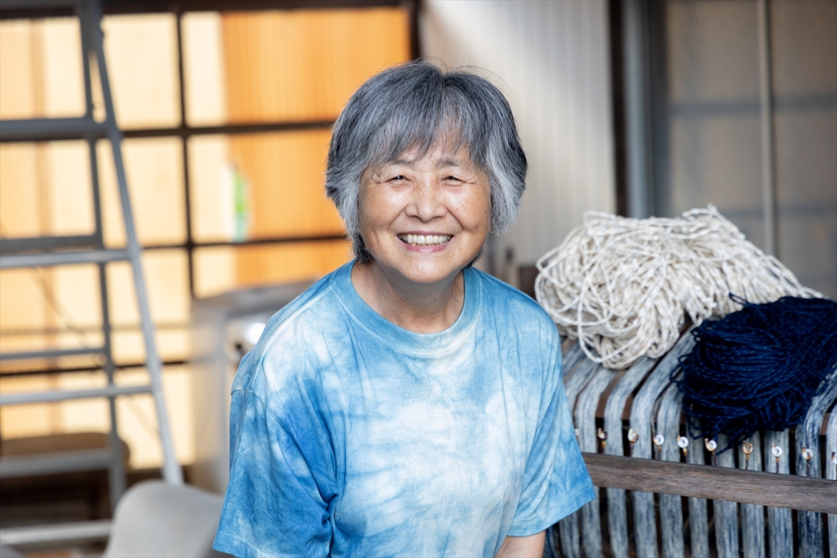 「47ROADS BY CROWN -THE EMOTIVE JOURNEYS-」は、ドライブだけでなく日本の伝統を受け継ぎながら、進化し続ける工芸の体験も含まれている。そこで志賀島を背にして福岡を南下し、もうひとつの目的地である「藍華 田中絣工房」へと向かうことにした。「藍華 田中絣工房」は、70年以上も久留米絣(かすり)を紡ぐ工房。うかがうと、3代目の田中麻美子さんが優しい笑顔で出迎えてくれた。