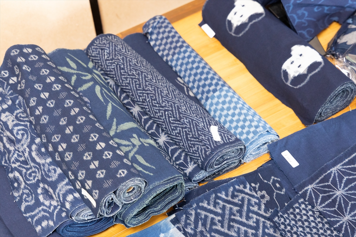 染料(と空気)が触れたところは染まり、触れない部分は白のままという特性を活かし、柄を構想して綿を染めてから織り上げるのが特徴だ。もともと筑後地方では藍の栽培が盛んだったこと、紺地に白の点を散らした模様が人気を集めたこと、そして政府の奨励もあって産業は隆盛を極めたのだという。