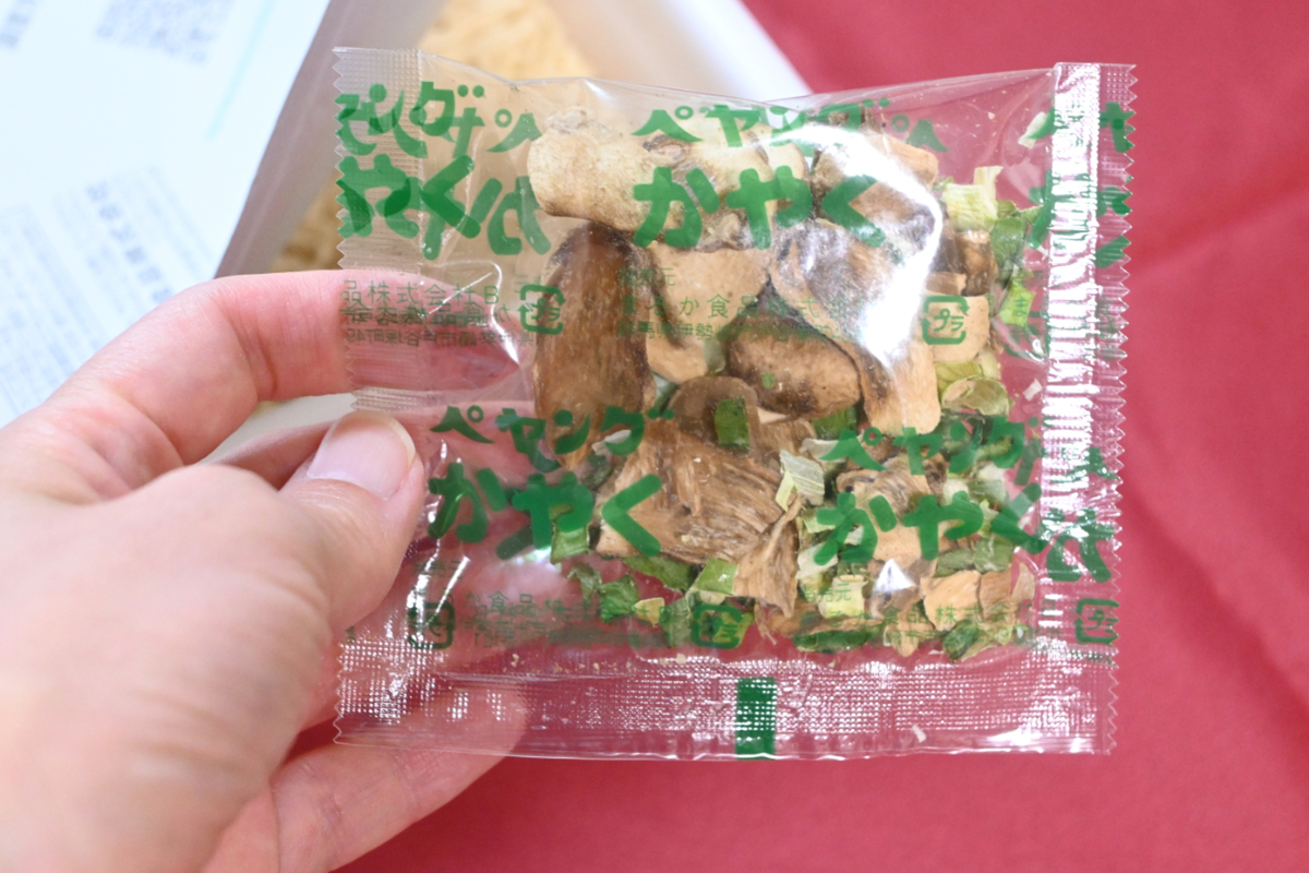 いつものペヤングの調理手順と同じく、湯を注ぐ前にかやくを入れます。このかやくに、松茸がーー。