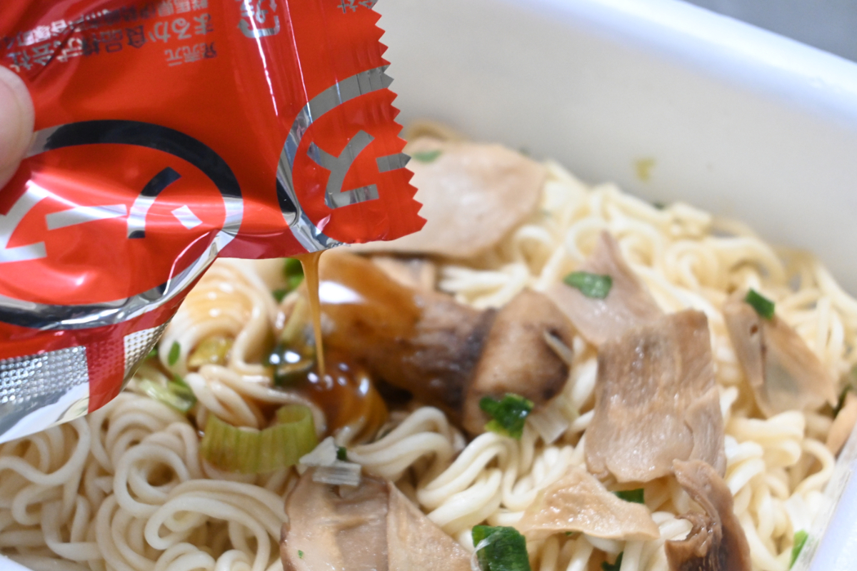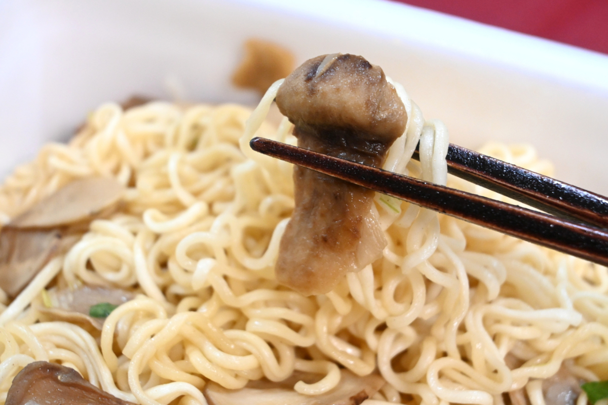 ソースは甘みが強いだし醤油の味わいで、松茸の風味を損なわないよう配慮しているのが伝わってきました。ただ一方で、ペヤングらしいパンチや中毒性のような要素は控えめで、ややおとなしい印象も受けました。