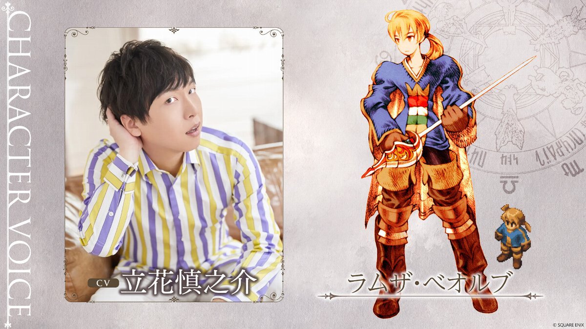 第一部は本作の開発メンバーが出演し、あらためて本作の概要と見どころを解説。そして第二部では、主人公ラムザ・ベオルブ役の声優・立花慎之介さん、オヴェリア・アトカーシャ役・潘めぐみさん、オーラン・デュライ役・前野智昭さんをゲストに迎え、収録時のエピソードが語られるほか、実機プレイも交えて本作の魅力を伝えていく。