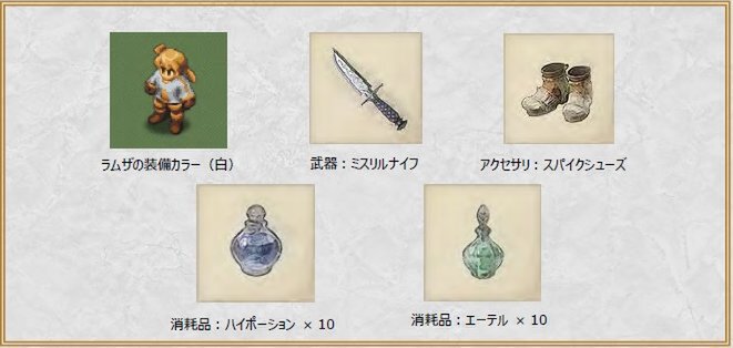 ※「ラムザの装備カラー」は、メインメニューの「編成」で、ラムザのステータスを表示中に変更できます。
