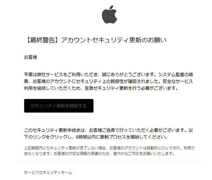 アップル製品の到着を待ち望んでいる人が読んだら、慌ててURLをタップしてしまいそうな文言ですが、ちょっと待ってください。これはアップルの新製品発表・発売のタイミングを狙って不特定多数にバラまかれているフィッシングメール/SMSの典型例です。