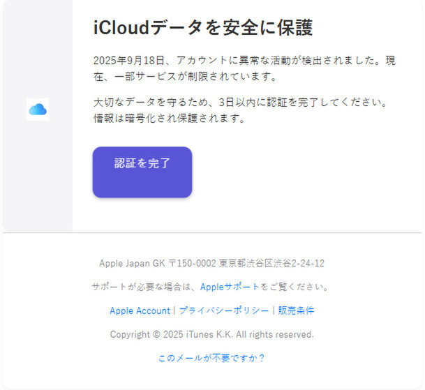 仮に、あなたがiPhoneの新型を待っていたとしても、不在連絡やiCloudの不具合といった内容のお知らせに一喜一憂せず、「この時期はフィッシング詐欺が大流行している」ことを思い出してください。