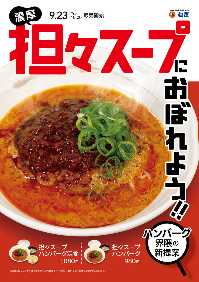 牛めしの「松屋」は、69店舗限定で「担々スープハンバーグ」を9月23日から販売中です。
