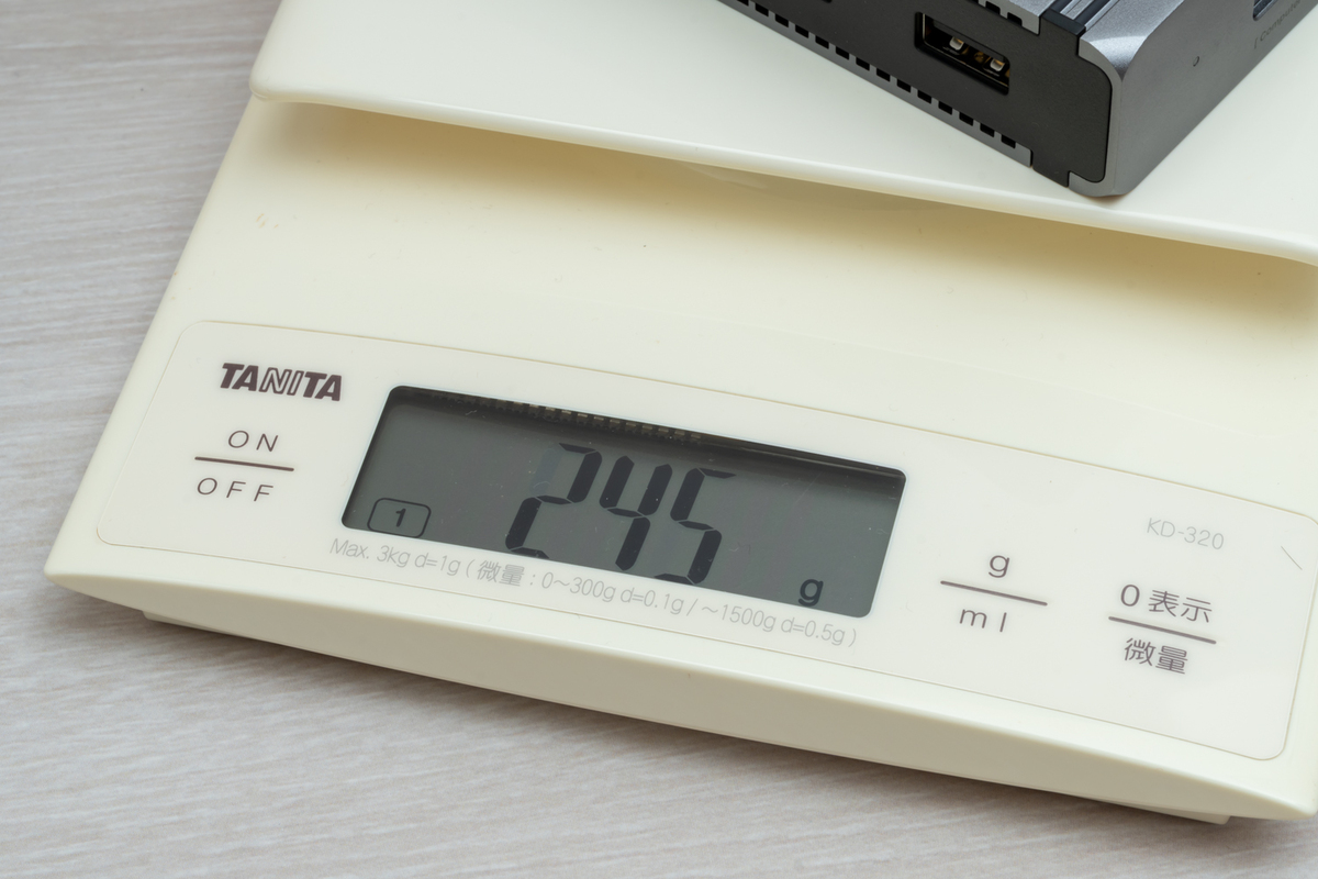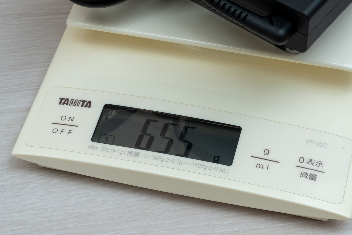 なお、ACアダプターは実測で奥行きはAC端子ケーブルの出っ張りを含めて、約122mmで、幅約63mm、厚さ約22mmと、場所を取らないサイズになっている。