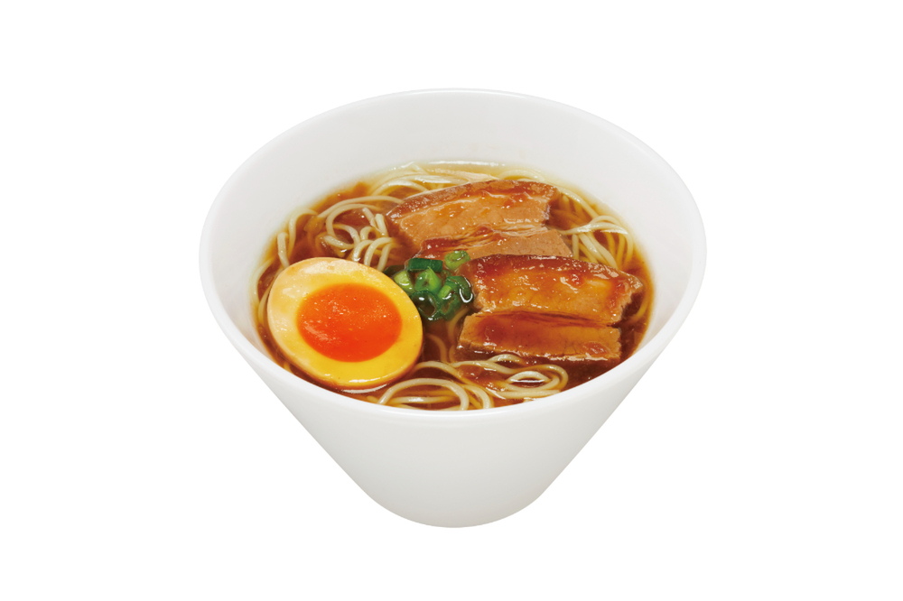 台湾の郷土料理「炕肉飯(コンローハン)」の甘辛く煮込んだ煮豚と、ミスドの“半熟風玉子”を麺にトッピング。ゴロっと具材とスープが、麺との相性もピッタリなんだとか。