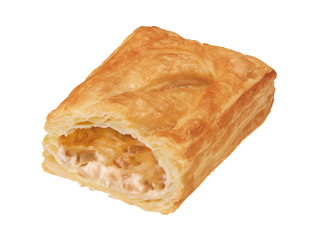 「きのことチキンのクリームシチューパイ」は、マッシュルームとまいたけの2種類のきのことチキンをクリーミーなシチューフィリングに仕立て、サクサクのパイ生地で包んで焼き上げています。