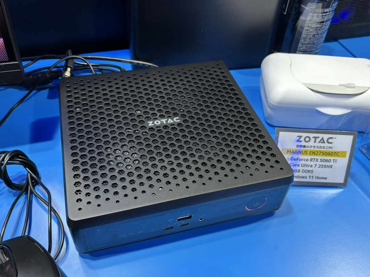 とくにZOTAC ZBOX MAGNUS EN275060TCは、NVIDIAの最新GPU「GeForce RTX 5060 Ti」を搭載しながら、最小クラスの筐体サイズを実現したデスクトップミニPCとして東京ゲームショウで初披露。省スペース性と高い描画性能を両立させており、PCゲームはもちろん、配信やクリエイティブ用途にも幅広く対応できる点が特徴となっている。
